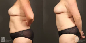of mastectomy (stage 1); Left breast tissue expander removal and DIEP flap reconstruction